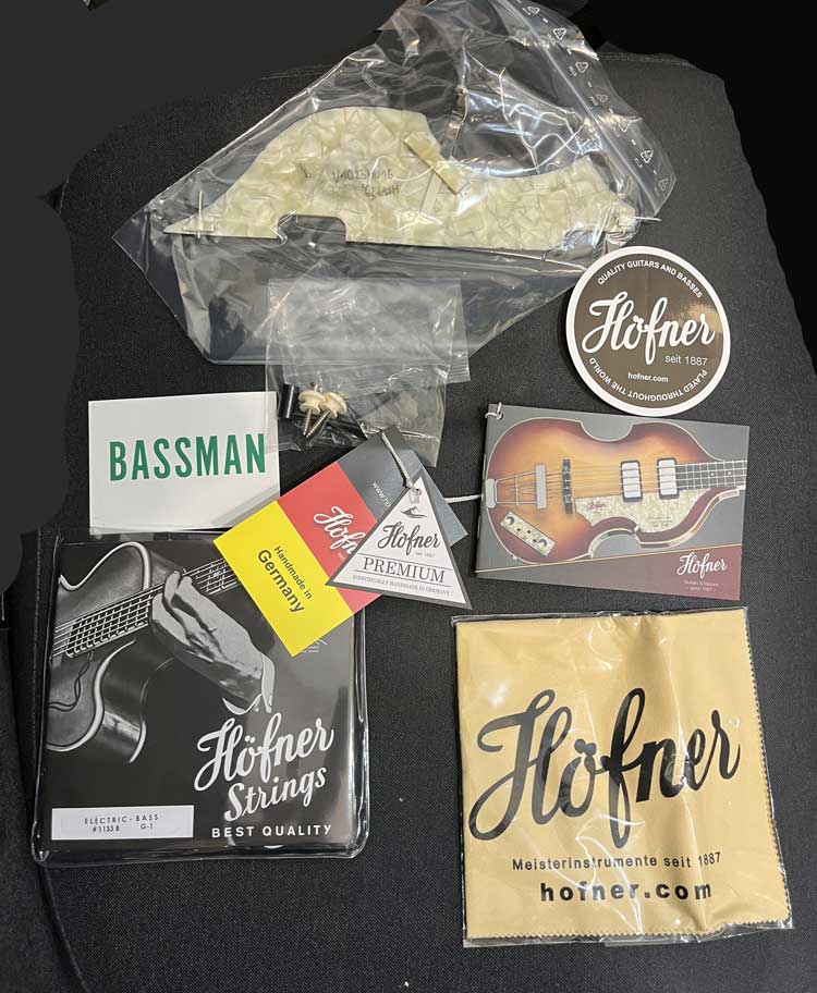 The guitar's Certificate of Authenticity, signed by Klaus Schoeller, the CEO of the Karl Hofner Company.