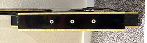 The top rim of the guitar's body, showing the ventilation holes required when a built-in amplifier is installed.