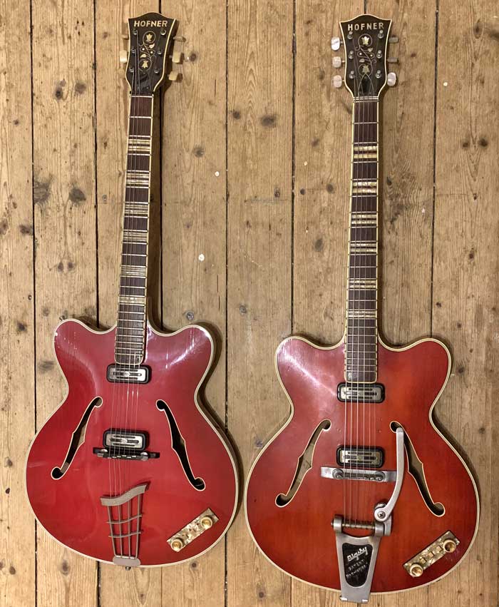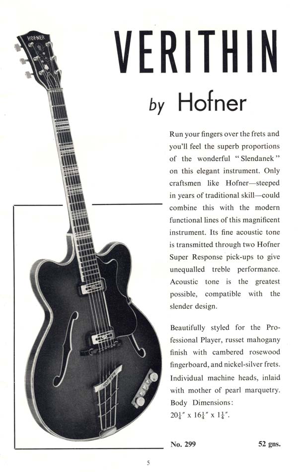 Note the early fret-marker design on the guitar illustrated in the 1960-61 Selmer Catalogue, in which the new Verithin model was first introduced.