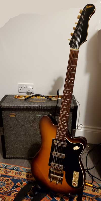Posing with Jim's lovely old Hofner V3 Solid Guitar.