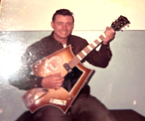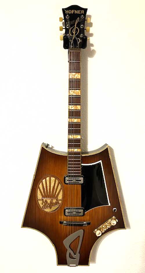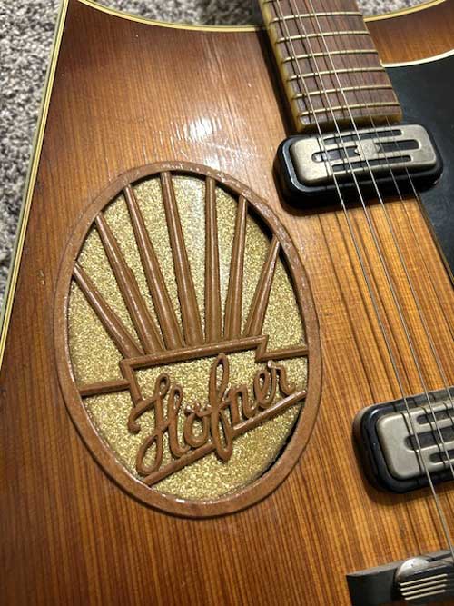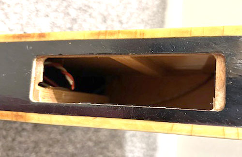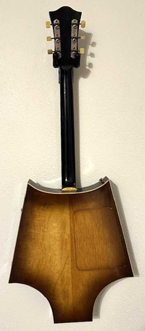 An empty body cavity, where the built-in amplifier and speaker was installed in some earlier Fledermaus guitars.