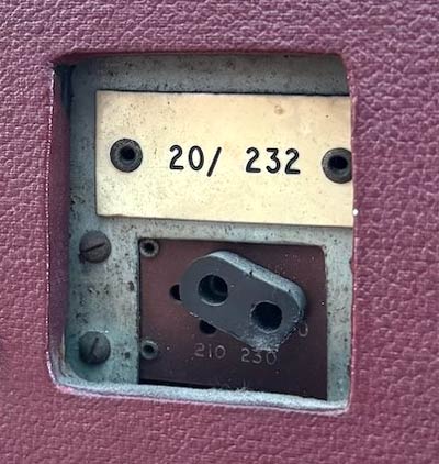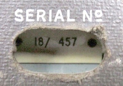 The style of serial numbers on white plastic plates riveted onto the rear face of the chassis, as introduced for the TV10 and TV15 combos in 1952, was continued on the four combo amplifiers made throughout Selmer's Maroon/Grey period. The model numbers preceded the serial number on the plates.